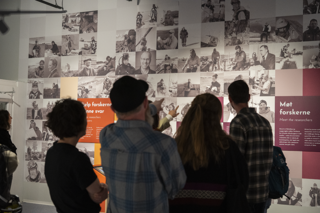 Klimaforsker Morven Mulwijk fra Norsk Polarinstitutt fikk æren av åpne Forskerrommet på Polaria. Han er en av forskerne som portretteres i den nye utstillinga. Foto: Enja Kjeldsen/Polaria.